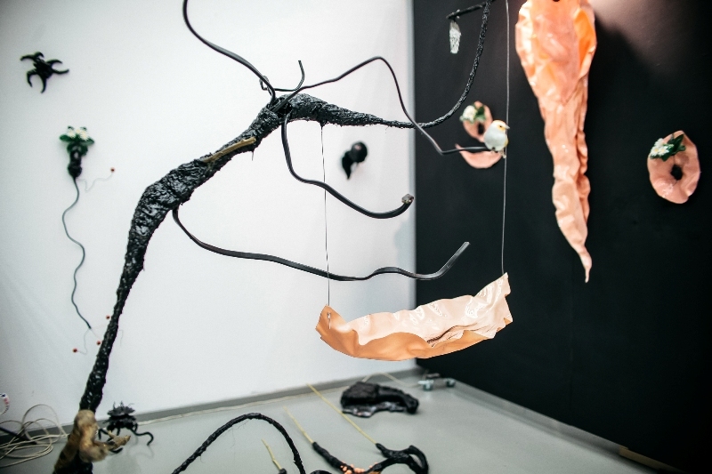 Слава владеет всеми практиками, от перформанса до инсталляционных форматов до графики. В период резидентства в Открытых студиях Слава провел недельный перформанс «Изящная жизнь молодого московского подающего надежды художника», а по пятницам он традиционно гадал и давал точнейшие прогнозы на будущее. Но больше всего внимания посетителей привлекали скульптуры Славы, которые присутствовали как тонкая паутина с вкраплениями пластических форм, аморфных, но почти точно живых. Заинтриговали? Тогда плейлист и